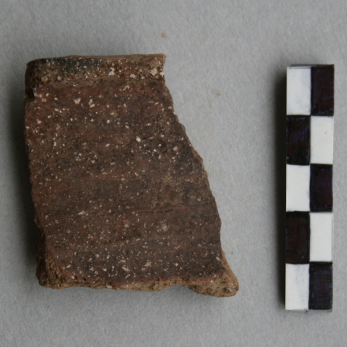 1 frammento di olla con labbro piatto estroflesso, orlo ad imbuto e decorazione a cordone orizzontale.