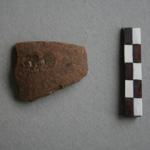 1 frammento di parete di scodella semplice con attaccatura di presa sotto l'orlo.