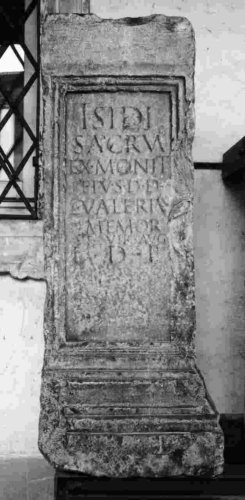 Il culto di Iside trova attestazione anche in altre località istriane, accanto a culti di stato, ed era esercitato da chi ricopriva anche cariche municipali, come nel caso del personaggio qui menzionato. Ragioni paleografiche e tipologia del monumento, inducono a proporre per quest'ara una datazione ai secc. I - II d.C.