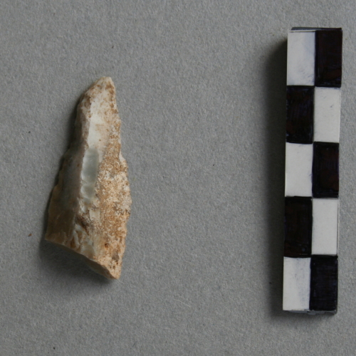 Punta a dorso marginale a ritocco erto diretto bilaterale, su frammento di scheggia corticata
