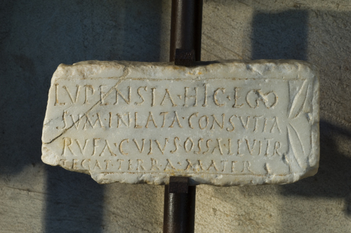 La superficie della fronte e dei lati è stata lavorata a gradina; le facce si presentano solo sbozzati. Ductus irregolare, con asimmetrica impaginazione del testo. In r. 3 le lettere TE di LEVITER sono unite in nesso. Evidenti tracce di rubricatura (antica?). Segni di interpunzione a semplice solco.