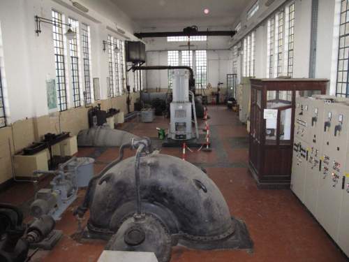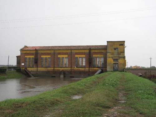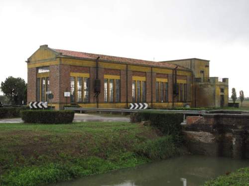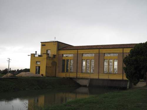 edificio a pianta rettangolare con muri perimetrali in muratura continua in laterizio a vista e in parte intonacato con grandi forometrie rettangolari seriali, interno ad unico vano con solaio piano e copertura a due falde in coppi di laterizio. Presente cabina elettrica, in due volumi rettangolari ad altezze diverse addossati al corpo principale con copertura piana e terrazza praticabile.