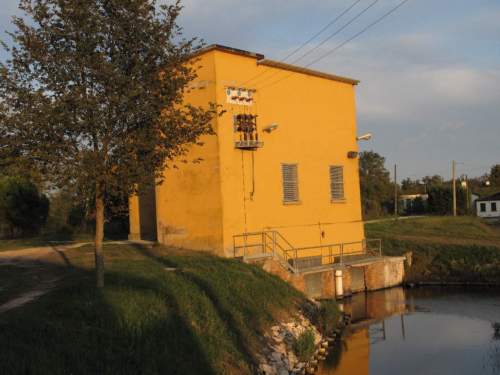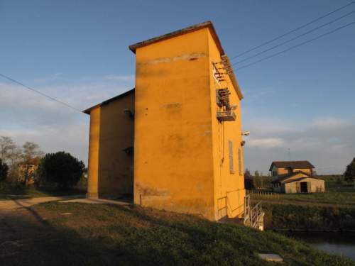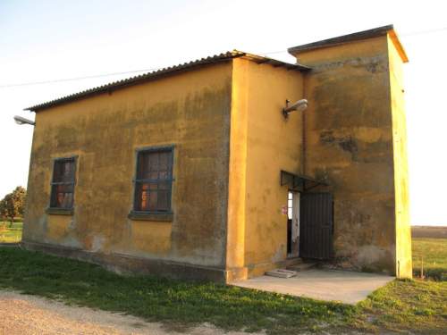 corpo principale a pianta rettangolare ad unico vano, con murature continue intonacate, presenti ampie finistre nei lati lunghi, solaio piano con copertura ad una falda. Torretta, utilizzata come cabina elettrica, addossata a corpo principale con stesse caratteristiche strutturali con copertura piana.