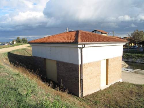 piccolo volume rettangolare con pareti continue in laterizio a vista e in parte intonacate, forometria regolare seriale, solaio piano con copertura a quattro falde in coppi di laterizio.