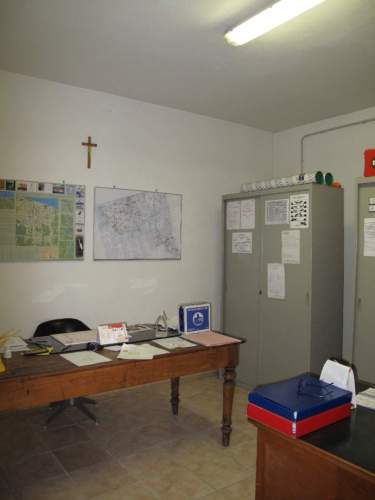 edificio a due volumi con corpo principale rettangolare con forometria regolare seriale, murature continue in laterizio intonacate e copertura a capanna in coppi di laterizio.