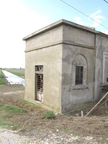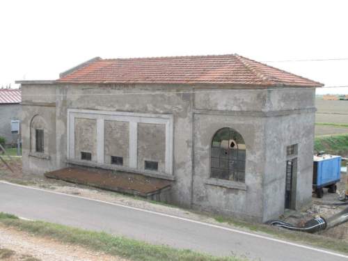 edificio a pianta rettangolare con murature continue in laterizio e a vista. Forometria centrale seriale regolare sul prospetto a monte e finestre arcuate agli esterni su entrambi i fronti lunghi; Solai piani e copertura principale a quattro falde in coppi di laterizio e copertura piana angolare per la cabina elettrica.