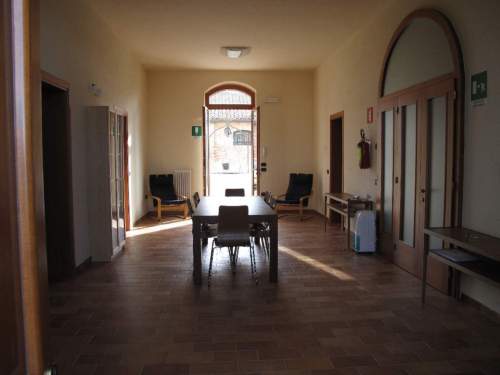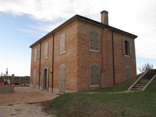 edificio a pianta rettangolare a due piani con murature continue in laterizio a vista con forometria seriale arcuata con balconi in legni, copertura a quattro falde in coppi di laterizio.