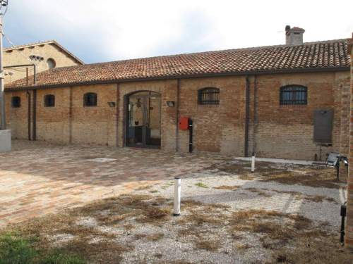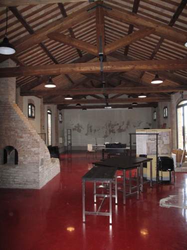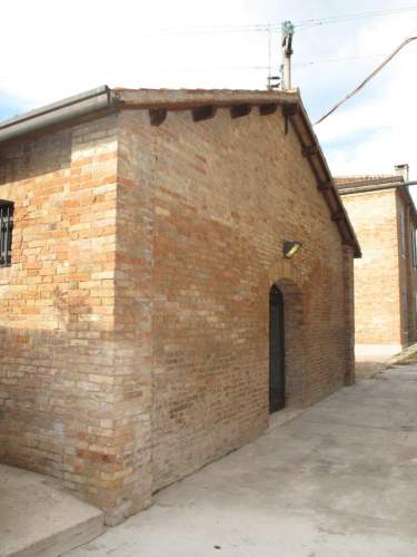 volume rettangolare con muri perimetrali continui in laterizio a vista con con forometraia seriale arcuata, sottotetto e capriate in legnoa vista con copertura a capanna in coppi di laterizio.