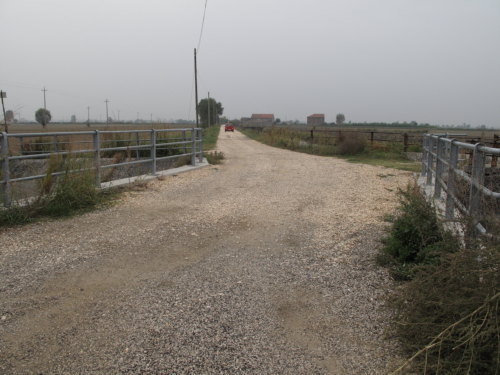 ponte in muratura a canna quadra a luce moderata con parapetti pieni in muratura con estremità curve.