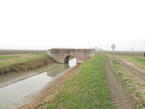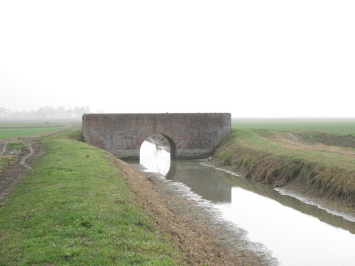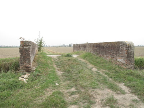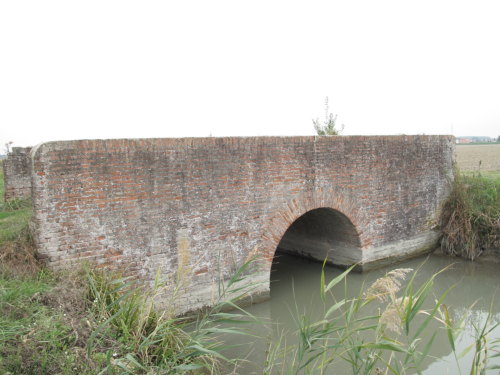 ponte in muratura continua a vista a canna ad arco a tutto sesto con parapetti pieni, pianta rettangolare con passaggio in terra.