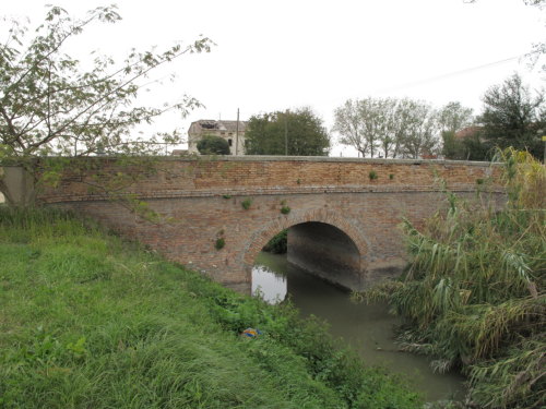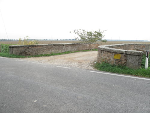 ponte in muratura continua a vista a canna ad arco a tutto sesto con ali inclinate e passaggio in terra. Manufatto con pianta a doppia C.