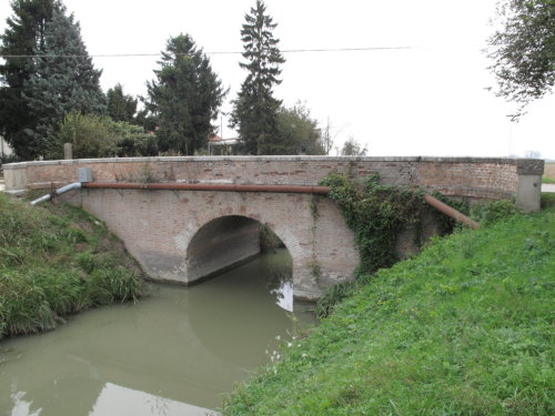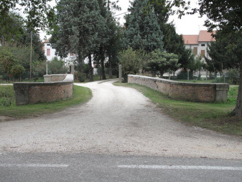 ponte in muratura continua a vista a canna ad arco a tutto sesto con ali inclinate e passaggio in terra. Manufatto con pianta a doppia C.