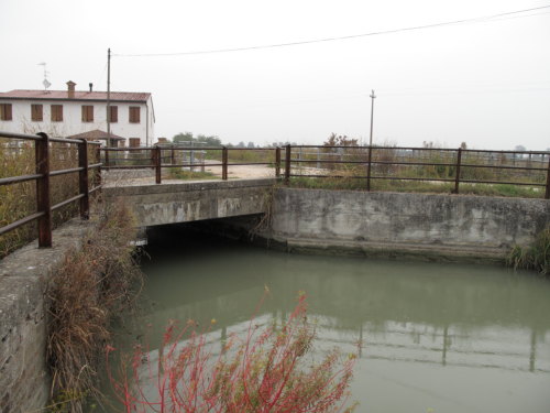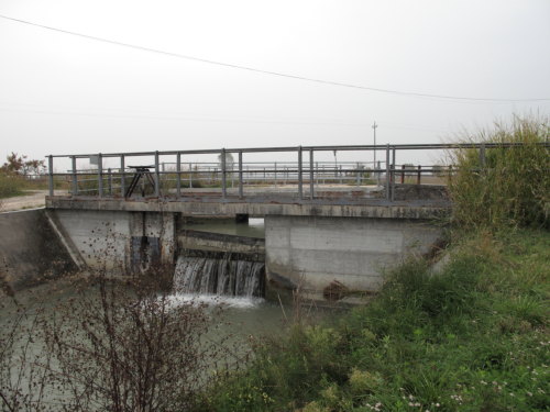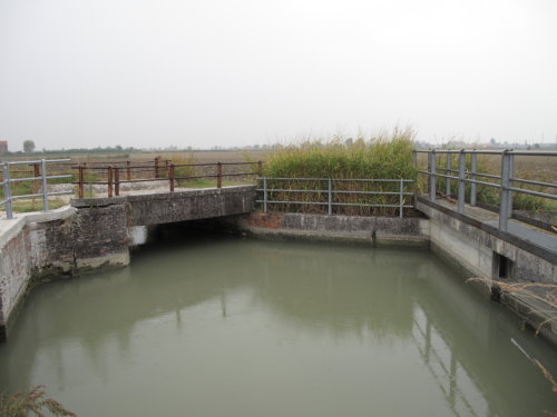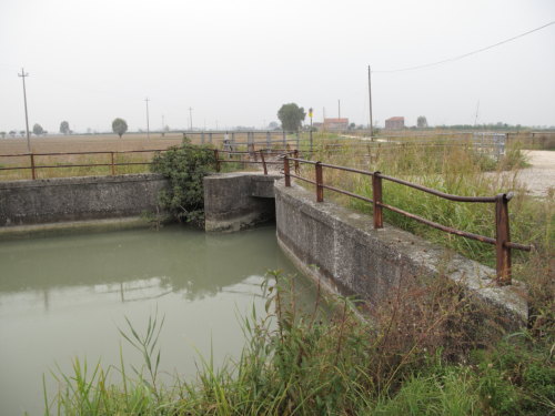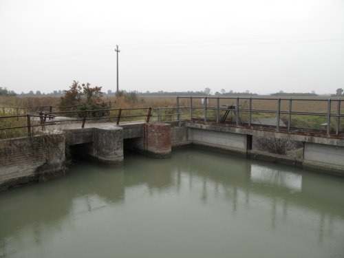 nodo idraulico per la distribuzione dell'acqua di irrigazione proveniente dall'impianto di derivazione del Canal Bianco. Funzione irrigua alternata e sovrapposta alla funzione di bonifica e scolo. Regolazione stagionale, manufatto in muratura e cemento.