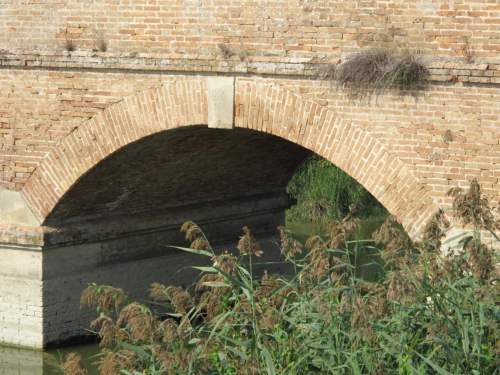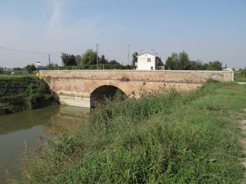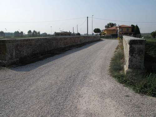 ponte in muratura continua a vista, a canna ad arco a tutto sesto con parapetti pieni, pianta rettangolare con passaggio in terra.