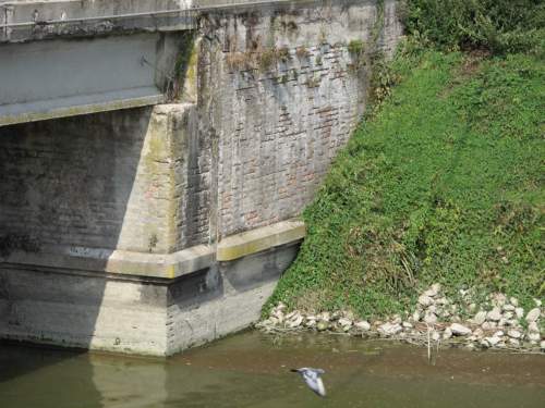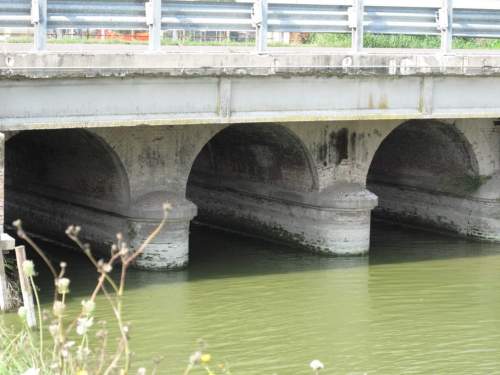 struttura in muratura con tripla canna ad arco a tutto sesto con parapetti misti in muratura e in ferro, presenza di una trave in cemento armato nel prospetto a valle inserita per l'ampliamento della sezione stradale. Manufatto a pianta rettangolare con passaggio asfaltato e parapetti in ferro coincidenti con il guardrail.