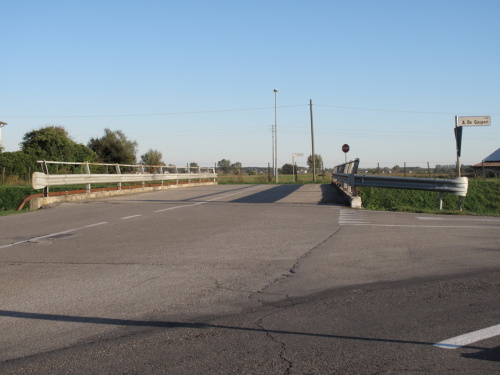 struttura a travata o travatina su pali in cemento armato, passaggio asfaltato provvisto di guardrail.