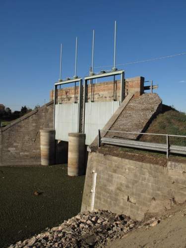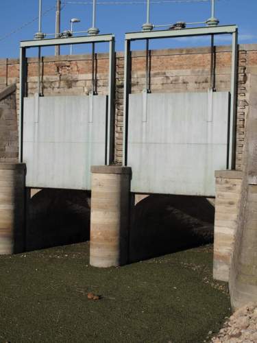 struttura complessa in muratura e pietra continue, composta da canna con doppia galleria a sezione circolare schiacciata. Presenza di Chiuse in ferro e gargame sul prospetto a valle. Presenza di strumenti idrometrici.
