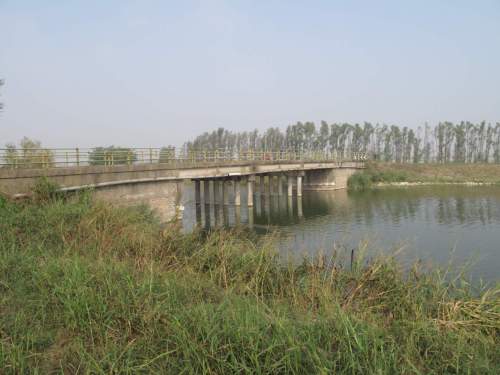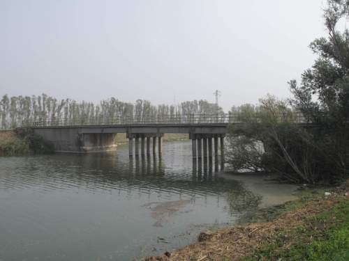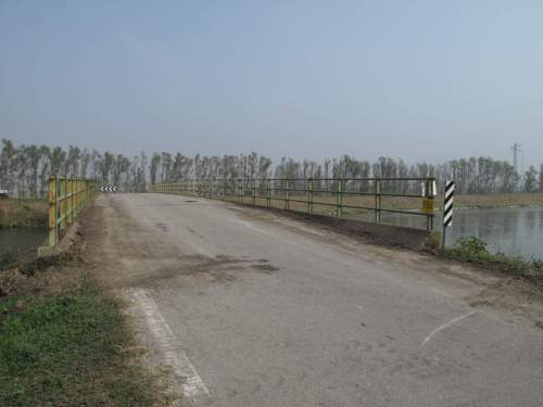 ponte a travata o travatina a canna quadra con spalle e pali realizzato in muratura continua e cemento armato, parapetti in ferro "a giorno". Passaggio asfaltato e pianta rettangolare.