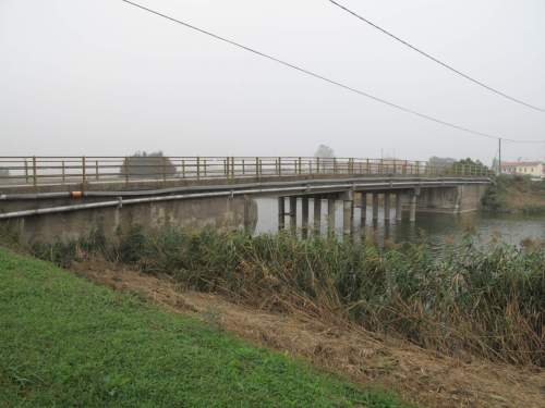 ponte a travata o travatina a canna quadra con spalle e pali realizzato in muratura continua e cemento armato, parapetti in ferro "a giorno". Passaggio asfaltato e pianta rettangolare.
