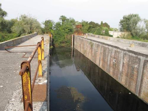 struttura in muratura e cemento composta da sue setti murari scanditi da pilastri su due piani, costruita essenzialmente per il passaggio e il controllo delle acque nello specifico del Po. Provvisti di scalette per la manutenzione. La visione della Conca a monte ricorda le logge di un teatro.