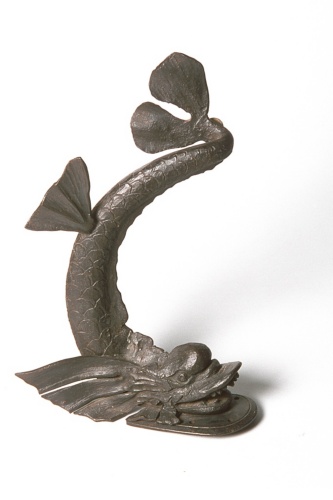 Questo oggetto a forma di pesce doveva servire da reggicristallo per uno degli sportelli della banca Bovio a Feltre
