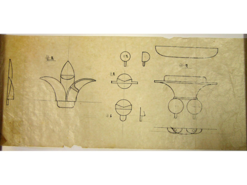 Il foglio presenta lo studio di tutte le parti componenti la lampada da muro.