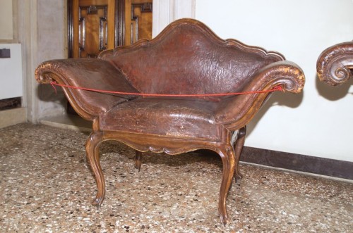 cuoio bulinato / legno di noce, intagliato