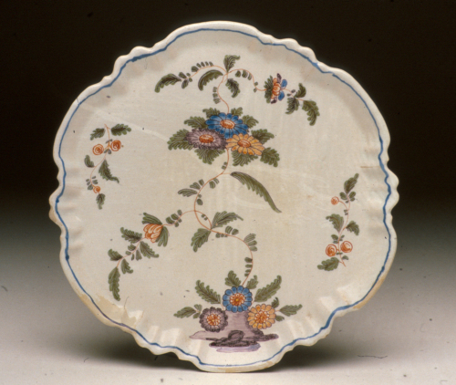 vassoietto rotondo con orlo a coste leggermente rialzato; decoro policromo