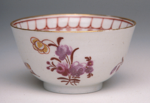 tazzina a coppetta senza manico su base ad anello; decoro policromo