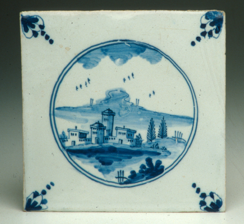 piastrella quadrata da camin ; decoro in monocromia blu
