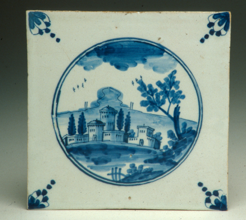 piastrella quadrata da camin ; decoro in monocromia blu
