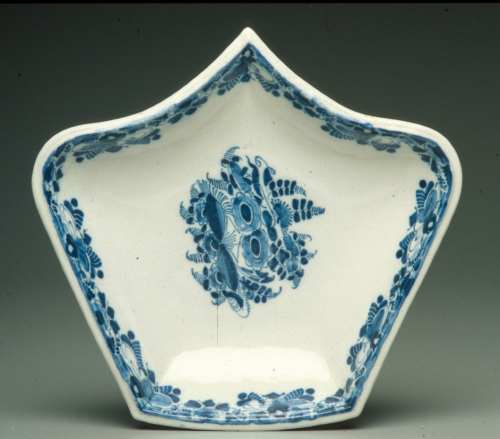 elemento di rysttafelstel (antipastiera) a orlo mistilineo; decoro in monocromia blu