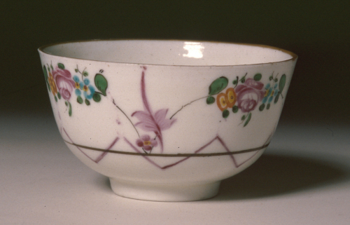 tazzina a coppetta senza manico su base ad anello; decoro policromo