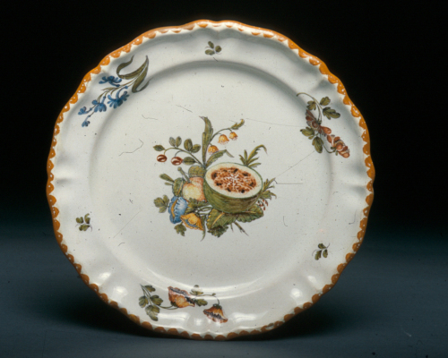 piatto rotondo con tesa lievemente centinata; decoro policromo