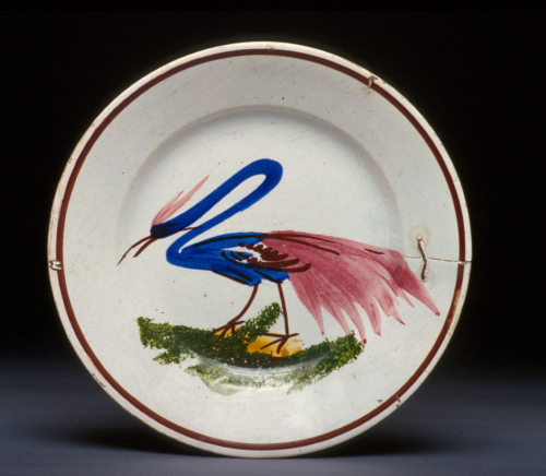 piatto popolare con cavetto poco pronunciato e tesa rialzata; decoro policromo