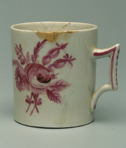 tazza cilindrica da caffè con manico mistilineo; decoro in monocromia viola