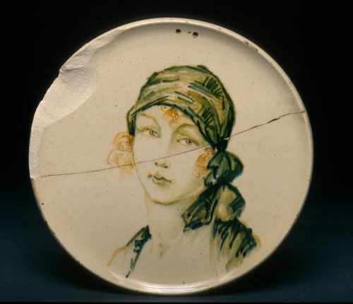 piattino rotondo con orlo rialzato; decoro policromo