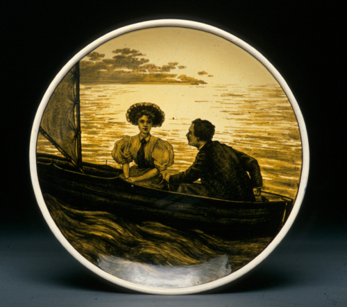 grande piatto rotondo con orlo leggermente rialzato; decoro in monocromia seppia