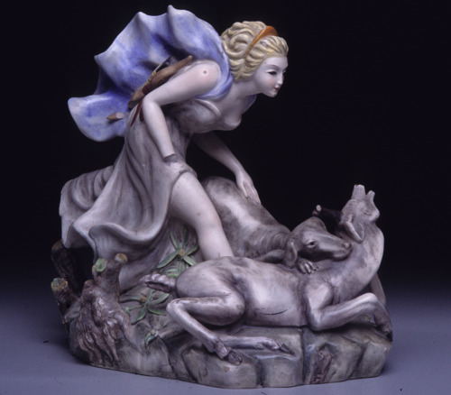 gruppo a tutto tondo con scena mitologica di caccia; decorazione policroma