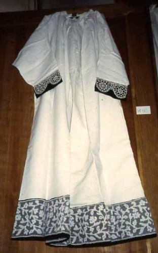 Bordura a fuselli punto Milano. Polsi ad ago con punte stondate. Fermaglio d'argento.