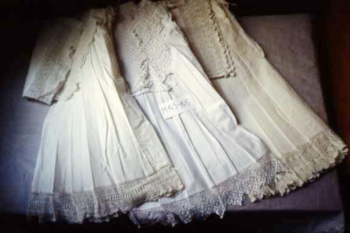 Tipologia "discreta". Bordura ad uncinetto. Sullo scollo fuselli meccanici.