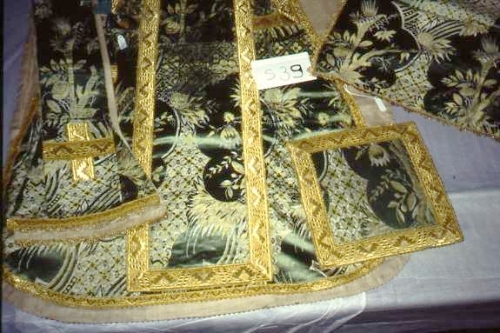 Tessuto operato a trame lanciate, con fondo di raso. La tela di fondo era originariamente cerata.