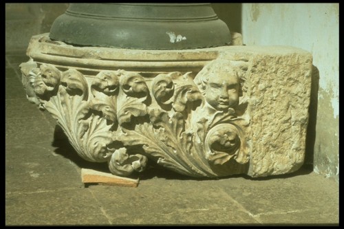 piano liscio modanato; mensole a rilievo con motivi decorativi: foglie d'acanto accartocciate, volto di putto.