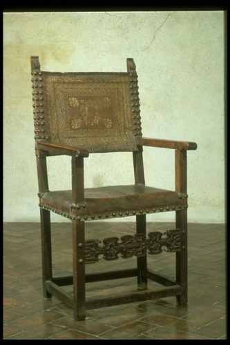 legno scolpito di noce/ intagliato / cuoio impresso/ dorato