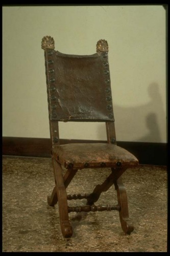 provenienza antiquariale. Le sedie pieghevoli documentate fotograficamente da Schottmuller 1921 e da Terni De Gregory sono identiche a questa (in quella riportata da Schottmuller, a Vienna, collezione Figdor, è diverso il cuoio).