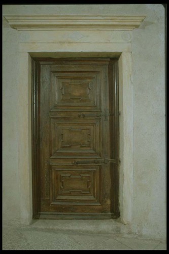 provenienza antiquariale. Il conservatore del castello, sig. Cattin, ricorda di aver ricavato la porta da una pi grande che gli ha permesso di realizzare questa e le altre due, simili, che sono in salone.