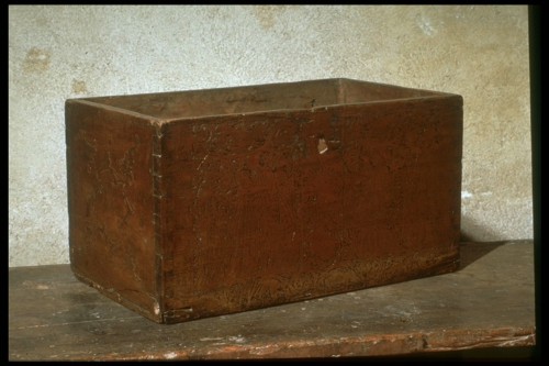 legno di cipresso (?) intagliato/ pirografato / cera dipinta