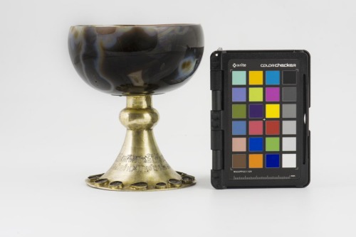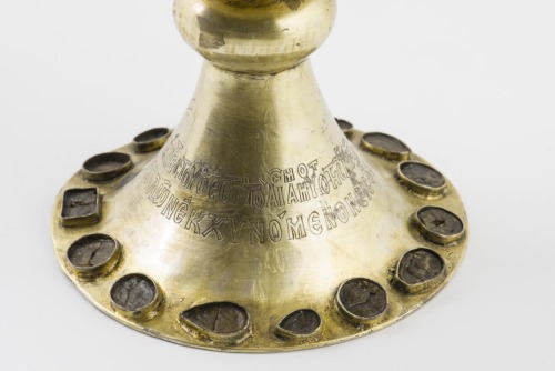 All'interno del Tesoro questo oggetto costituisce l'unico esempio di coppa priva di una montatura lungo l'orlo. L'incisione sulla base si riferisce alle parole con cui il sacerdote consacra il vino dell'eucarestia