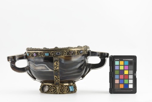 La coppa è un'opera bizantina, mentre la montatura è stata realizzata in una bottega veneziana nel corso della seconda metà del Duecento