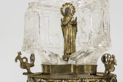 Madonna a tutto tondo in argento dorato a figura intera; è raffigurata sopra uno sgabello, decorato sul profilo del piano d'appoggio da motivi a volute fitomorfiche a niello. Attorno al capo vi è un'aureola, con una iscrizione in greco a niello, coronata da una fila di perle